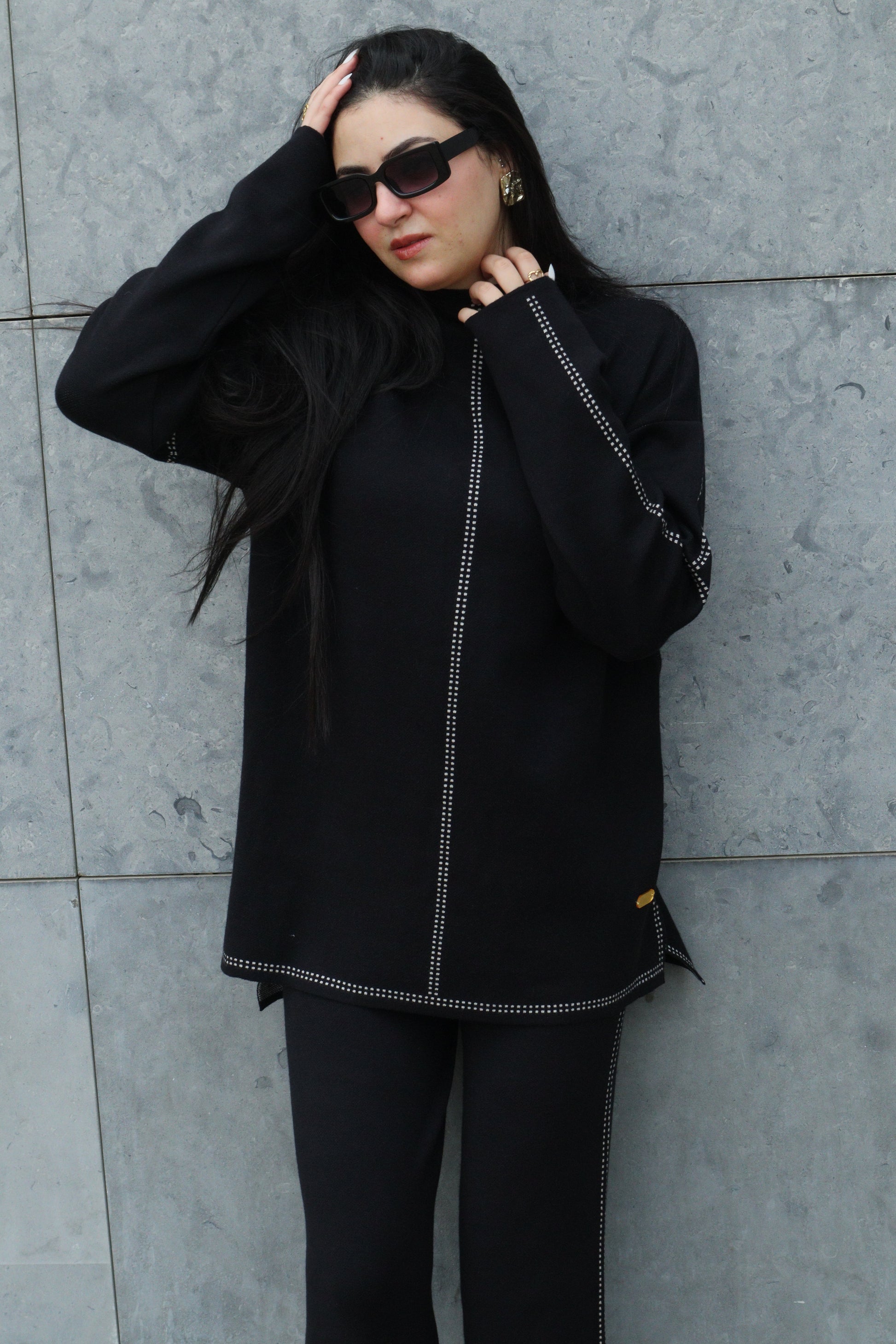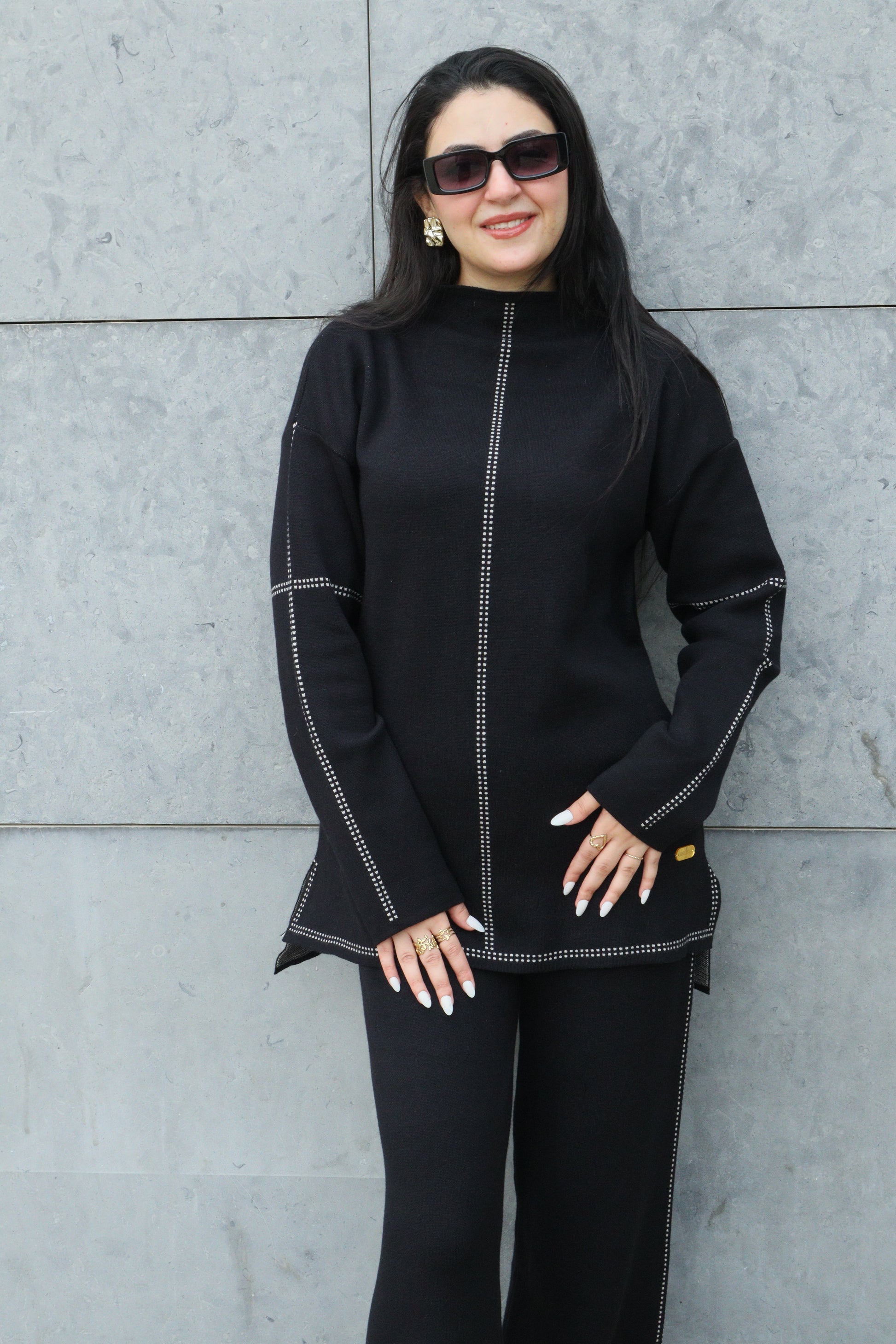 The Trace Set in Black radiates timeless elegance with its deep, rich hue. Designed for those who appreciate understated luxury, this ribbed knit set combines comfort and sophistication, making it a versatile essential for any occasion.