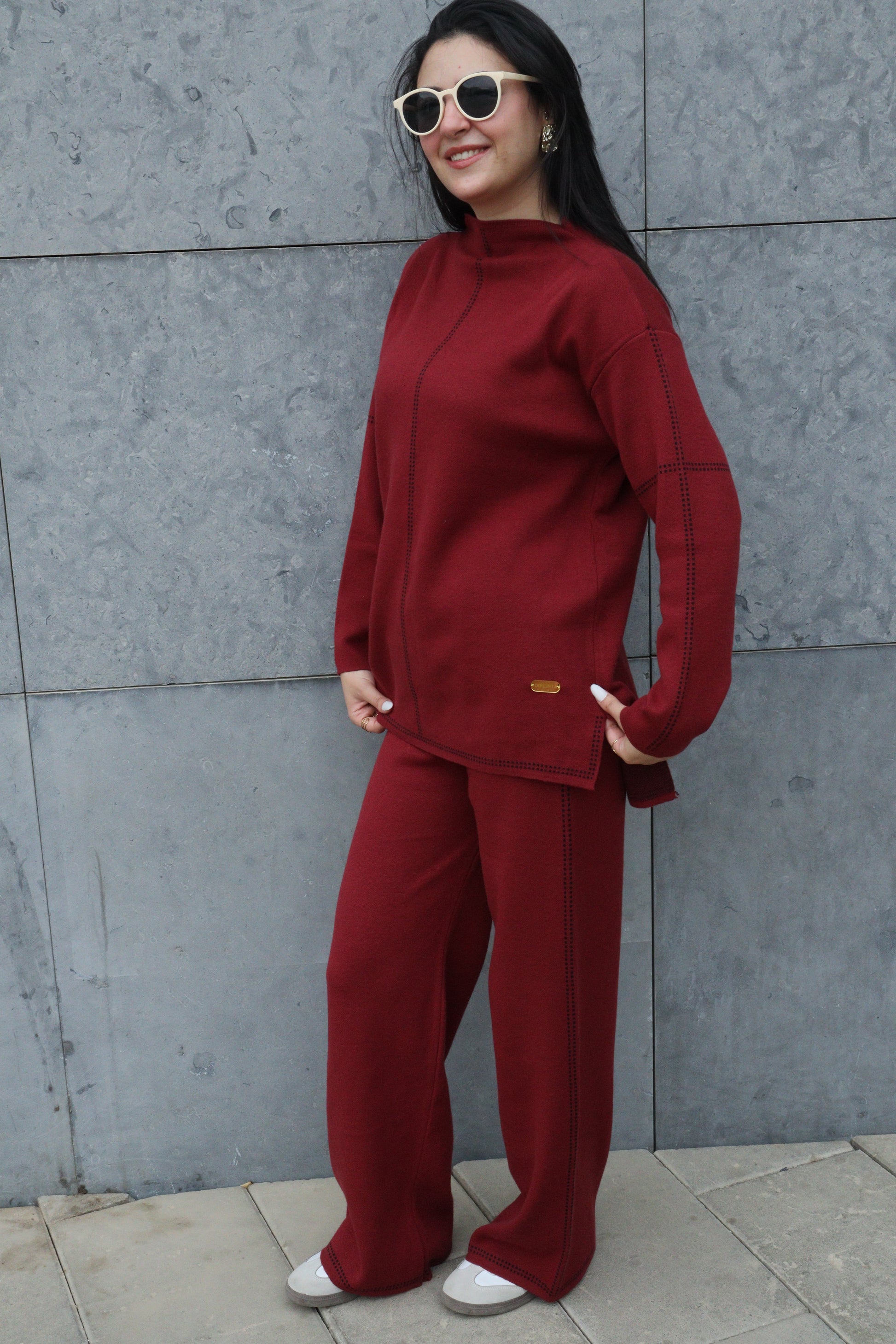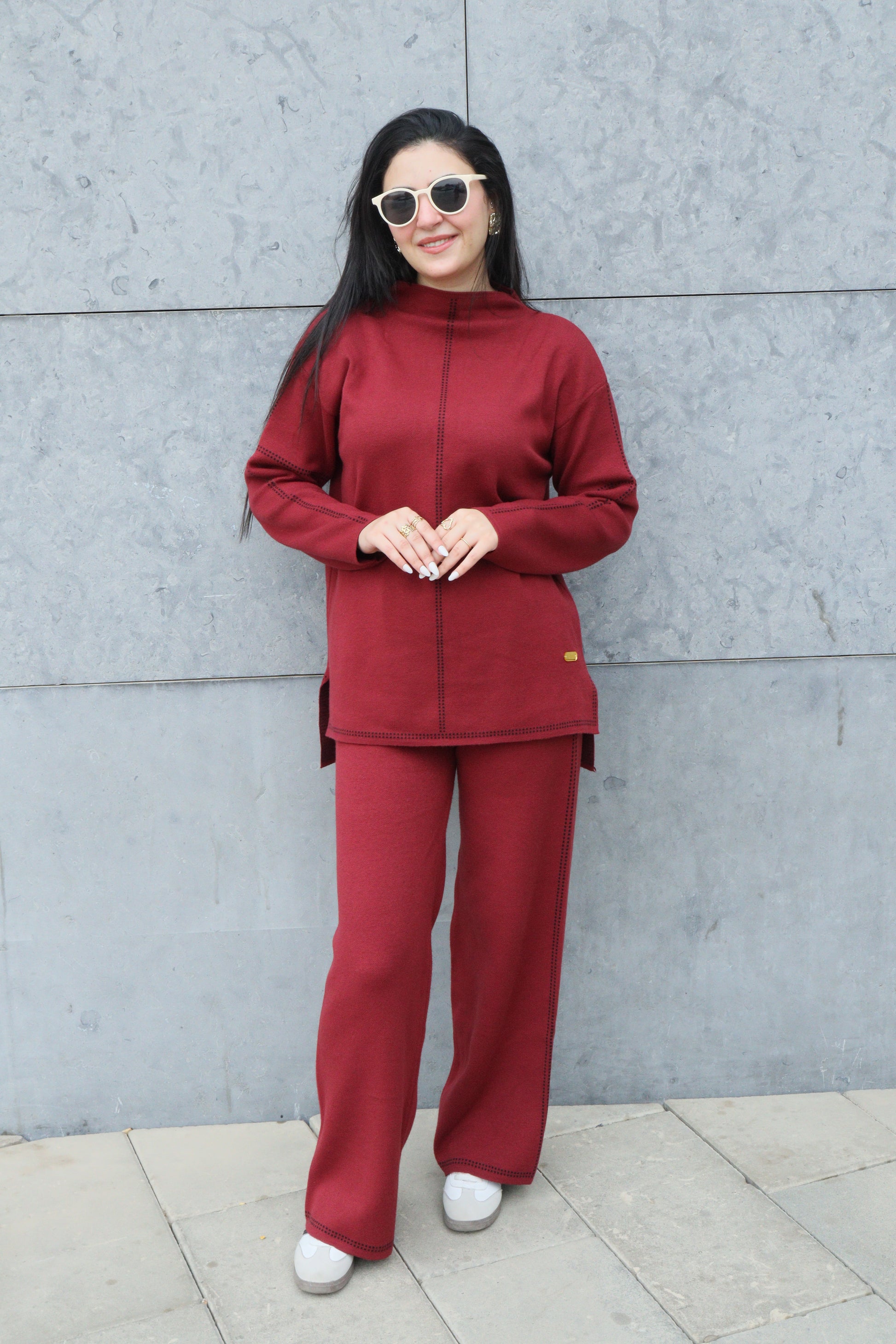 The Trace Set in Burgundy exudes confidence and charm through its deep, bold tone. Crafted from premium ribbed knit, it beautifully merges comfort with statement style — ideal for moments when you want to stand out gracefully.